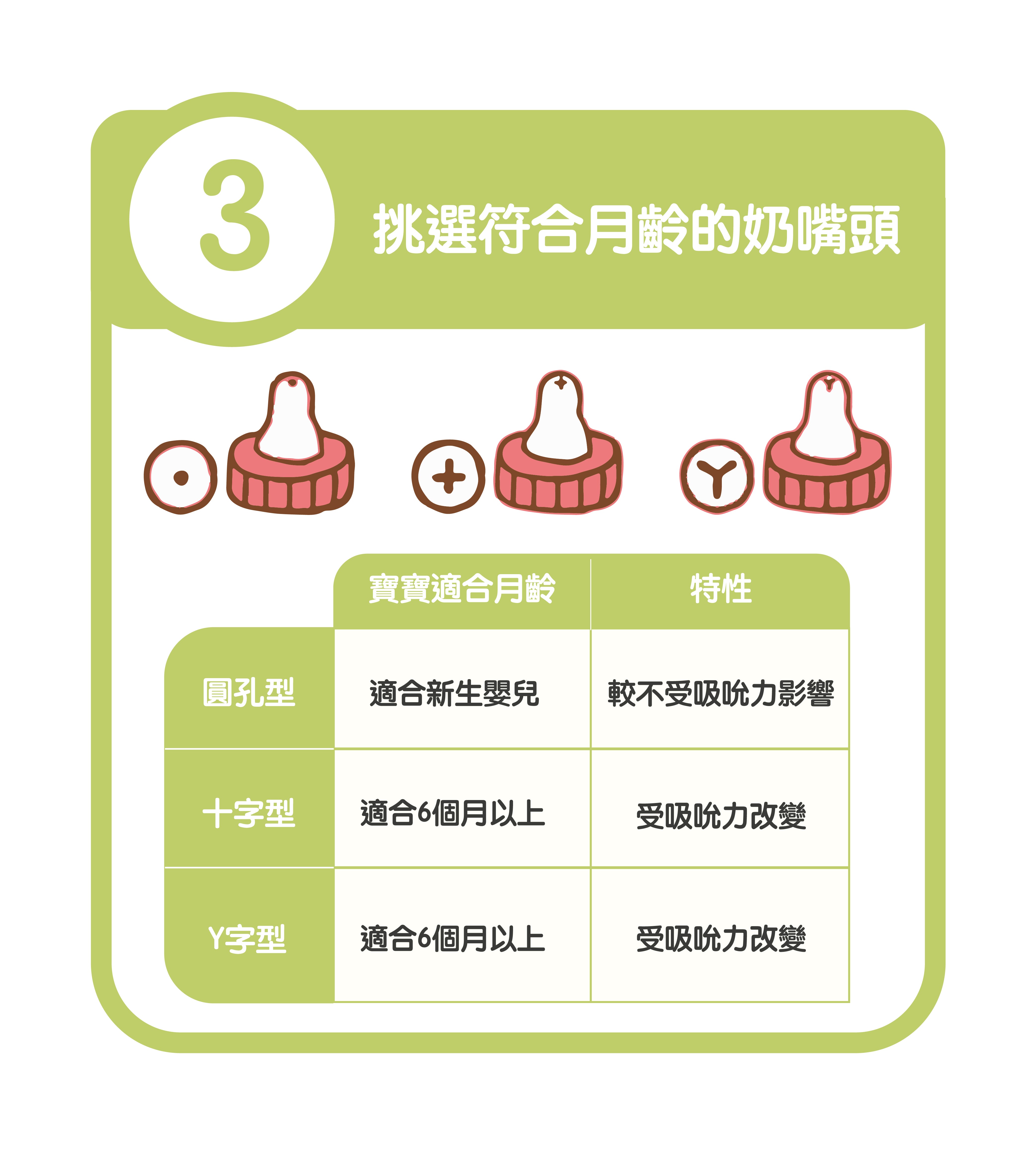 檢視奶嘴洞是否符合寶寶吸奶速度,更換奶瓶顏色也能吸引寶寶,增加喝奶專注力